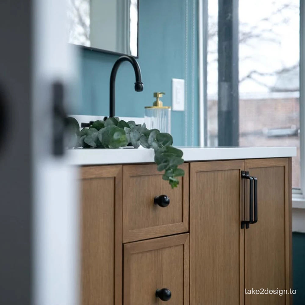 A closer look at the sophisticated design elements of the Cape Breton Mid Century Oak Vanity.