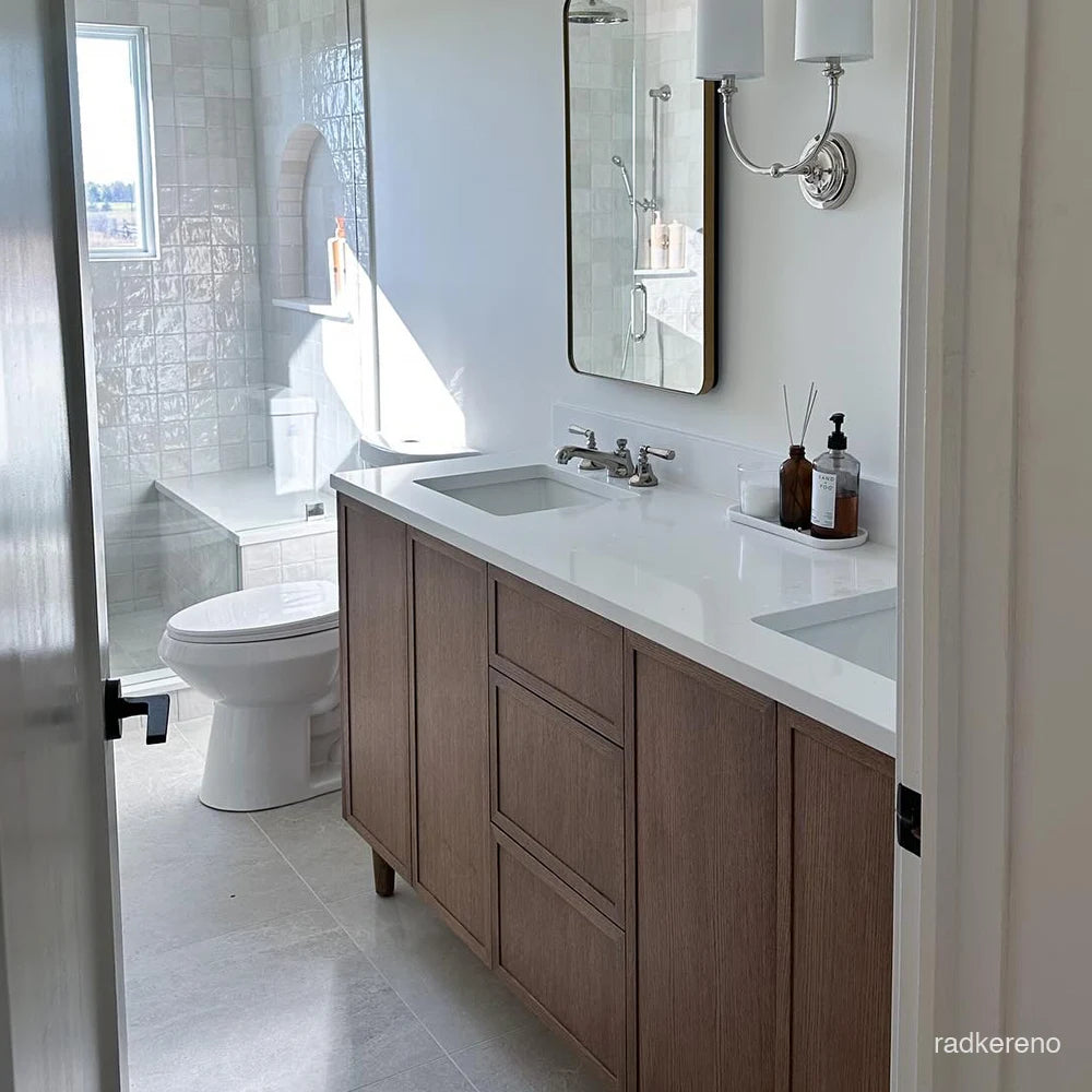 Cape Breton SLIM 60" Mid Century Oak Bathroom Vanity, Double Sink is proudly made in Canada.