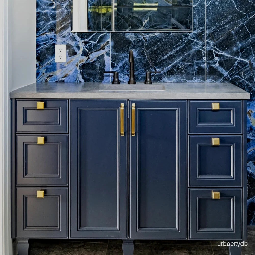 A closer look at the sophisticated design elements of the Davenport Pacific Blue Vanity.