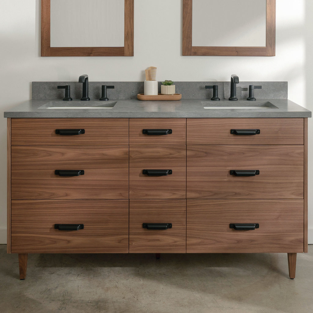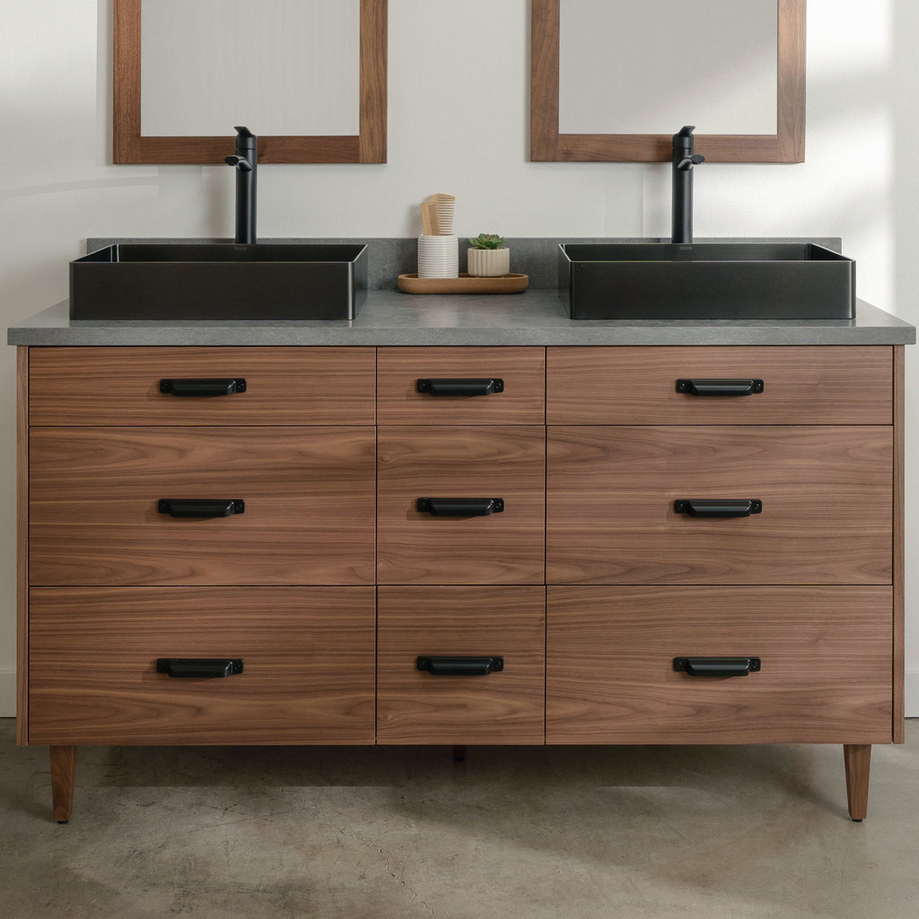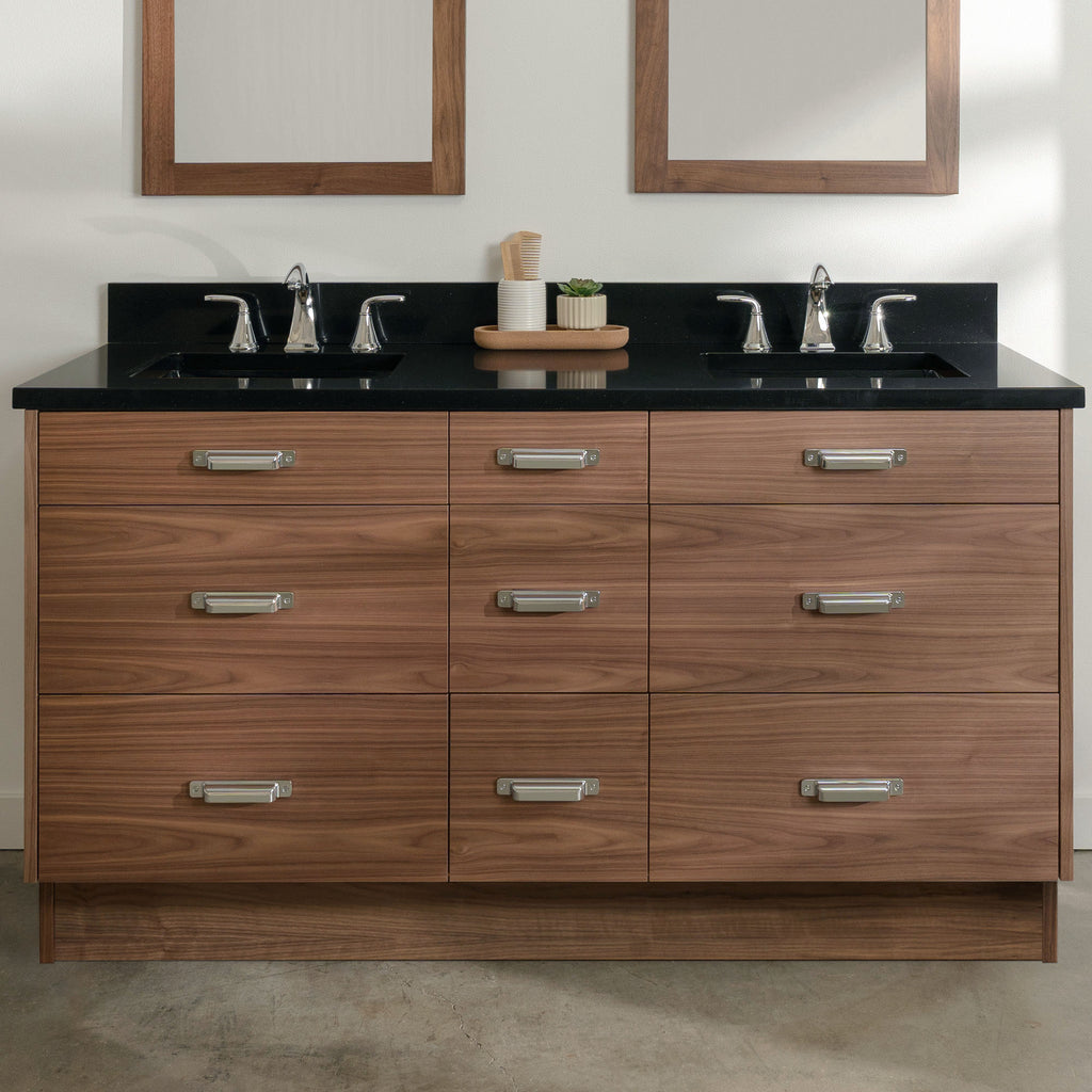 Asher Stainless Slim 60" American Black Walnut Bathroom Vanity, Double Sink