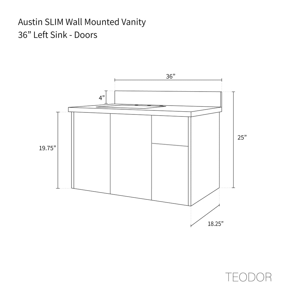 Austin SLIM 36" Wall Mount American Black Walnut Bathroom Vanity, Left Sink is proudly made in Canada.