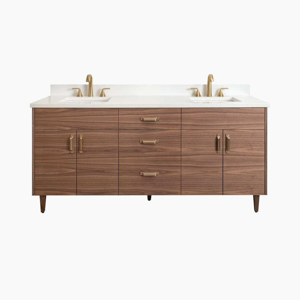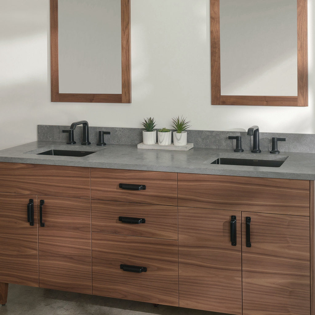Austin Stainless Slim 72" American Black Walnut Bathroom Vanity, Double Sink