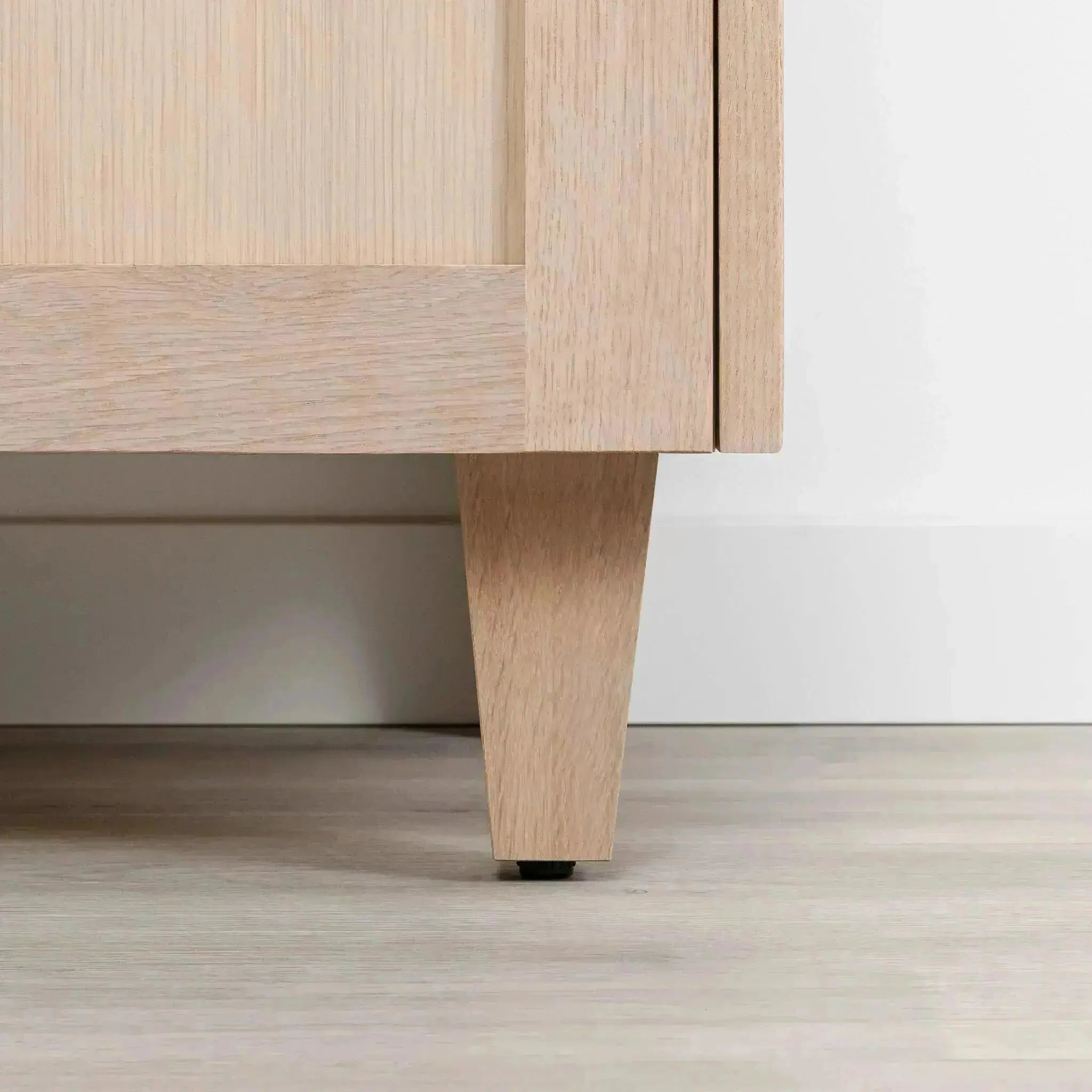 - Solid white oak tapered legs.