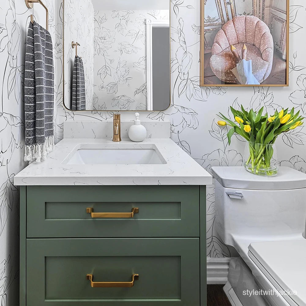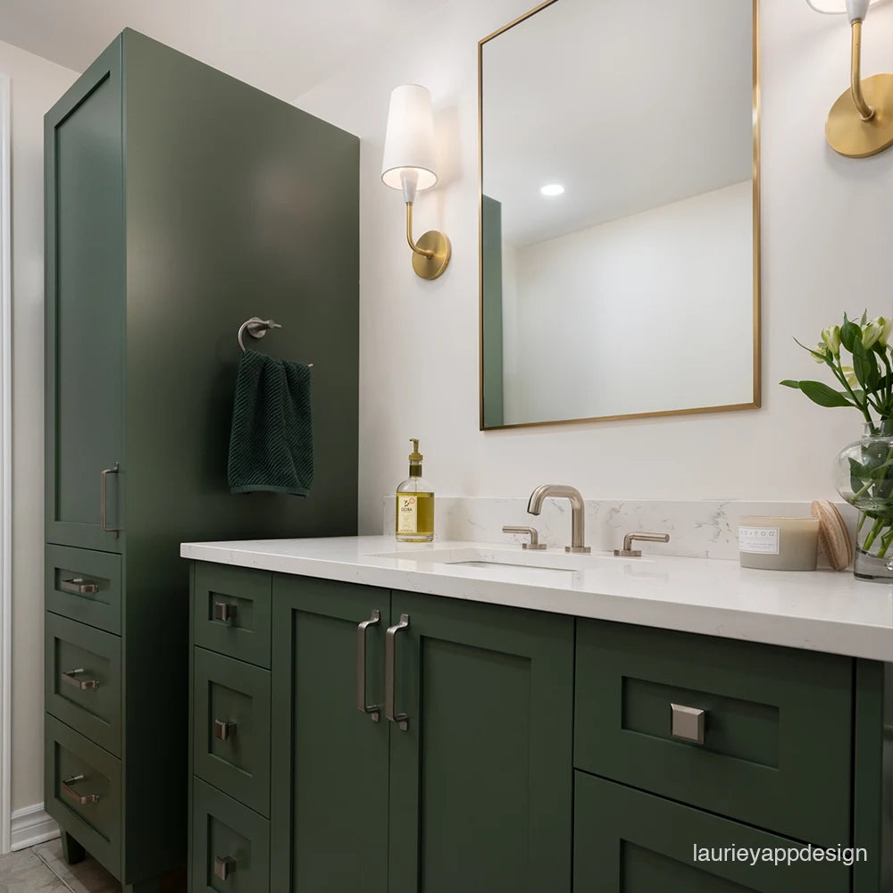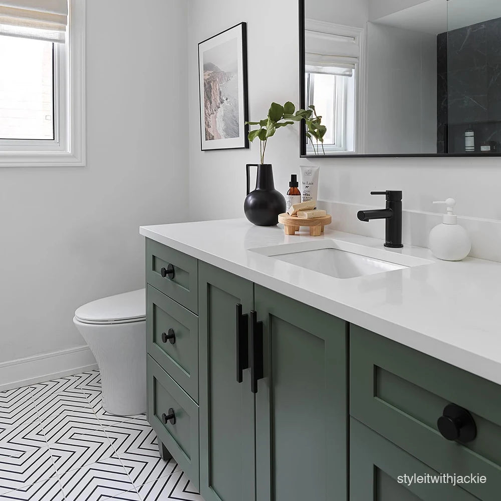 A closer look at the sophisticated design elements of the Bridgeport Sage Green Vanity.