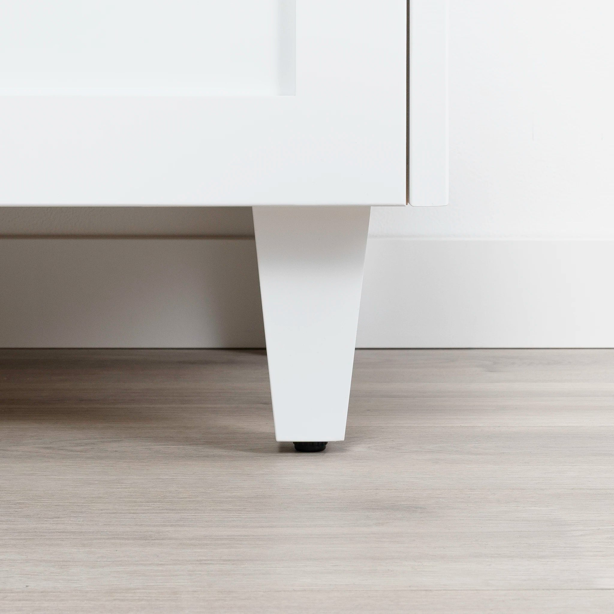 A closer look at the sophisticated design elements of the Bridgeport Satin White Vanity.