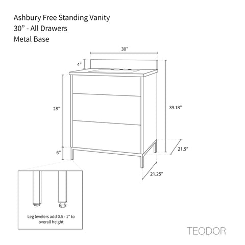 Ashbury 30" Natural White Oak Bathroom Vanity - All Drawers