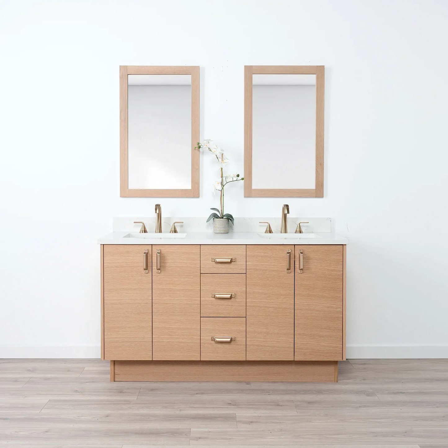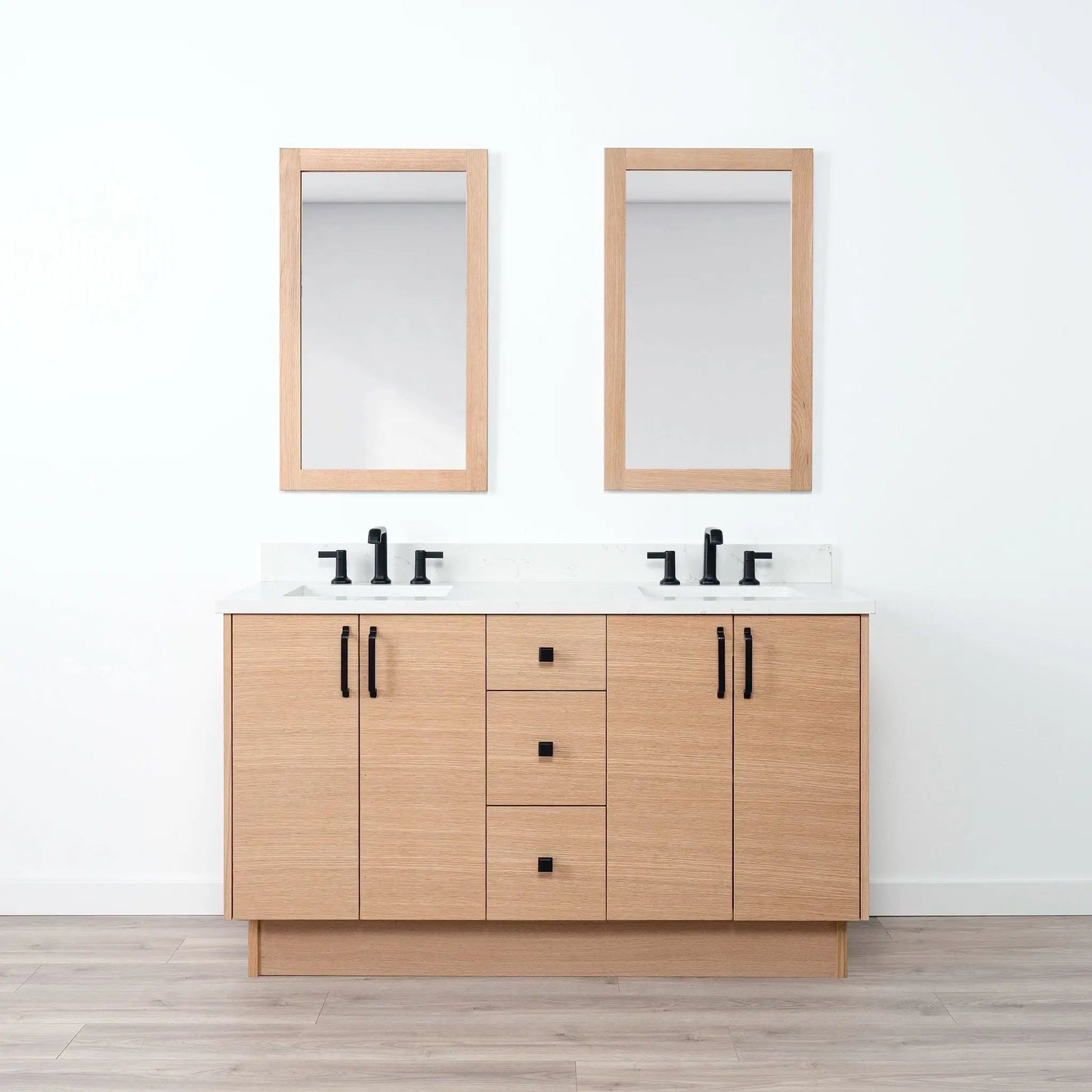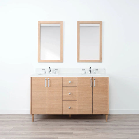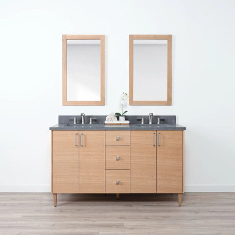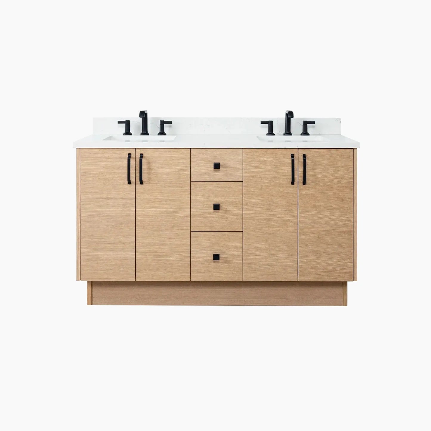 Ashbury 60" Natural White Oak Bathroom Vanity, Double Sink