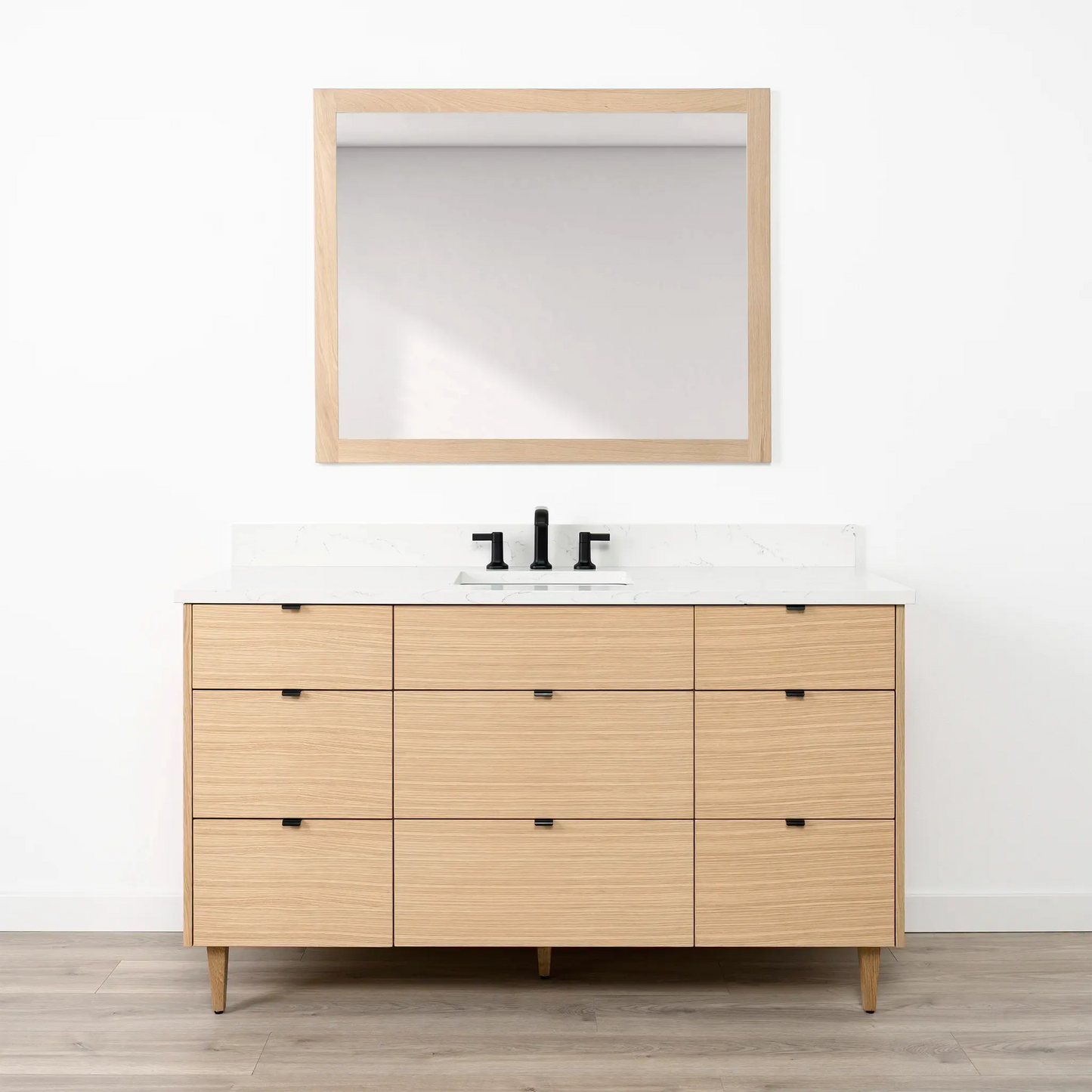 Ashbury 60" Natural White Oak Bathroom Vanity - All Drawers