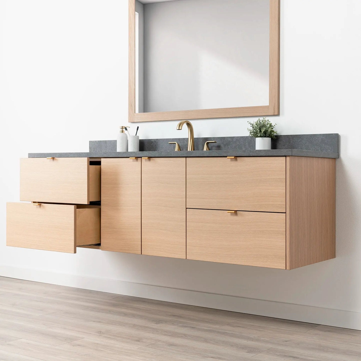 Ashbury 72" Wall Mount Natural White Oak Bathroom Vanity