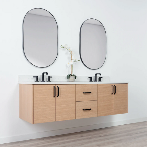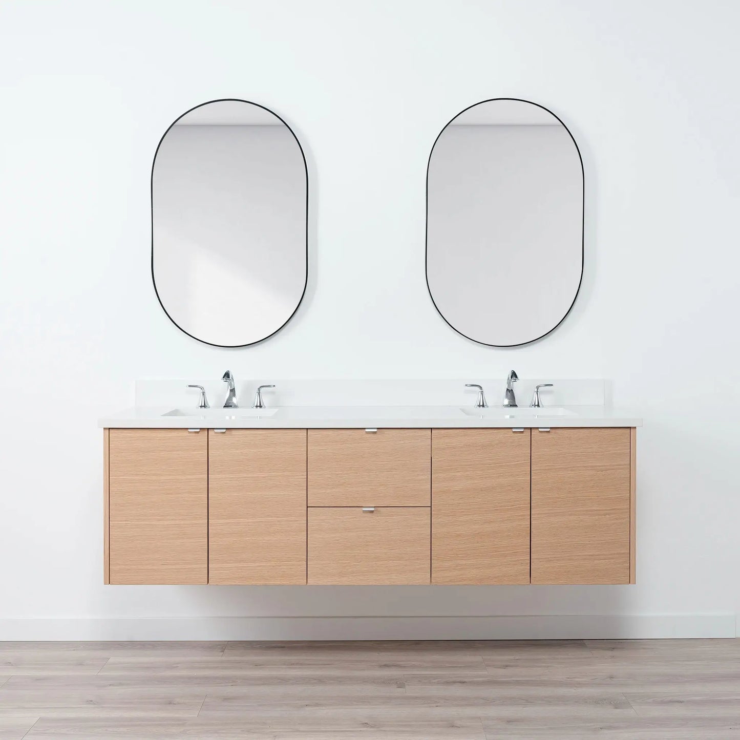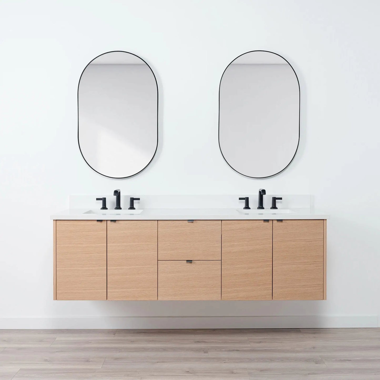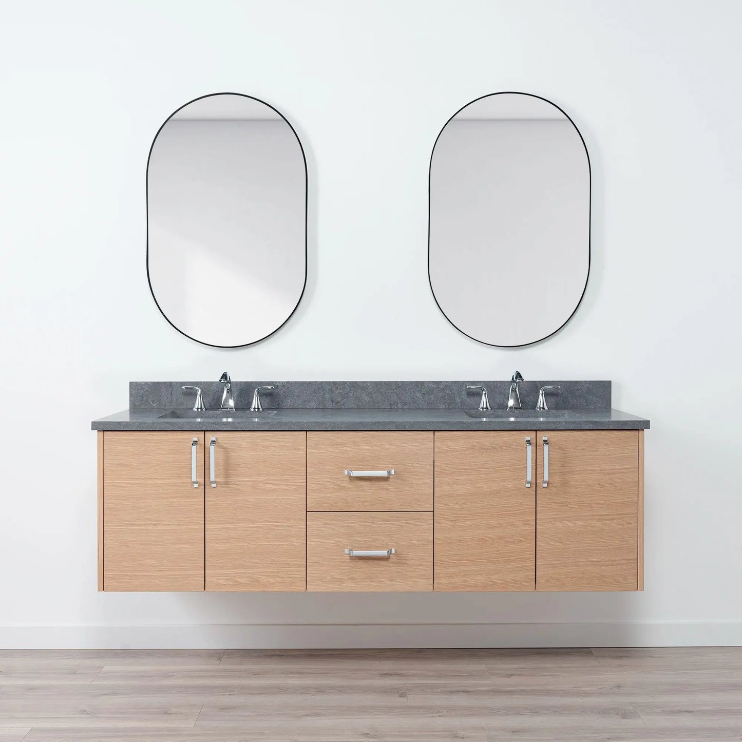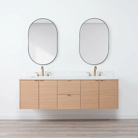 Ashbury 72" Wall Mount Natural White Oak Bathroom Vanity, Double Sink