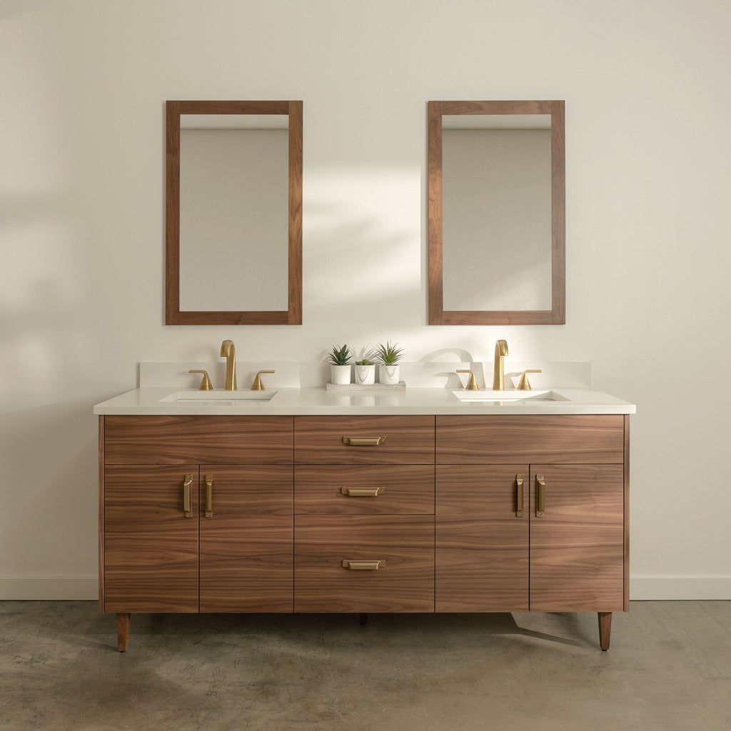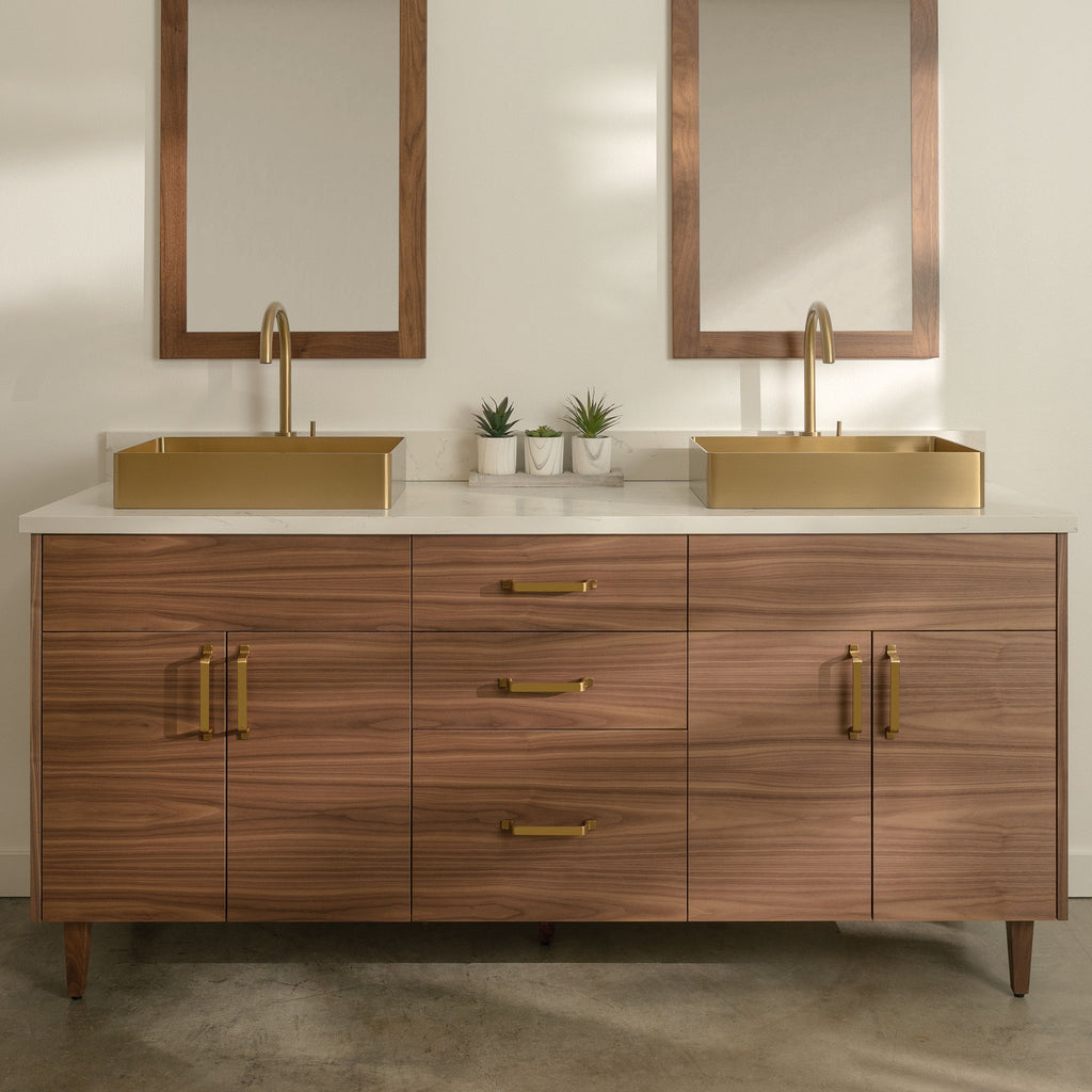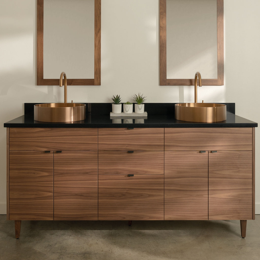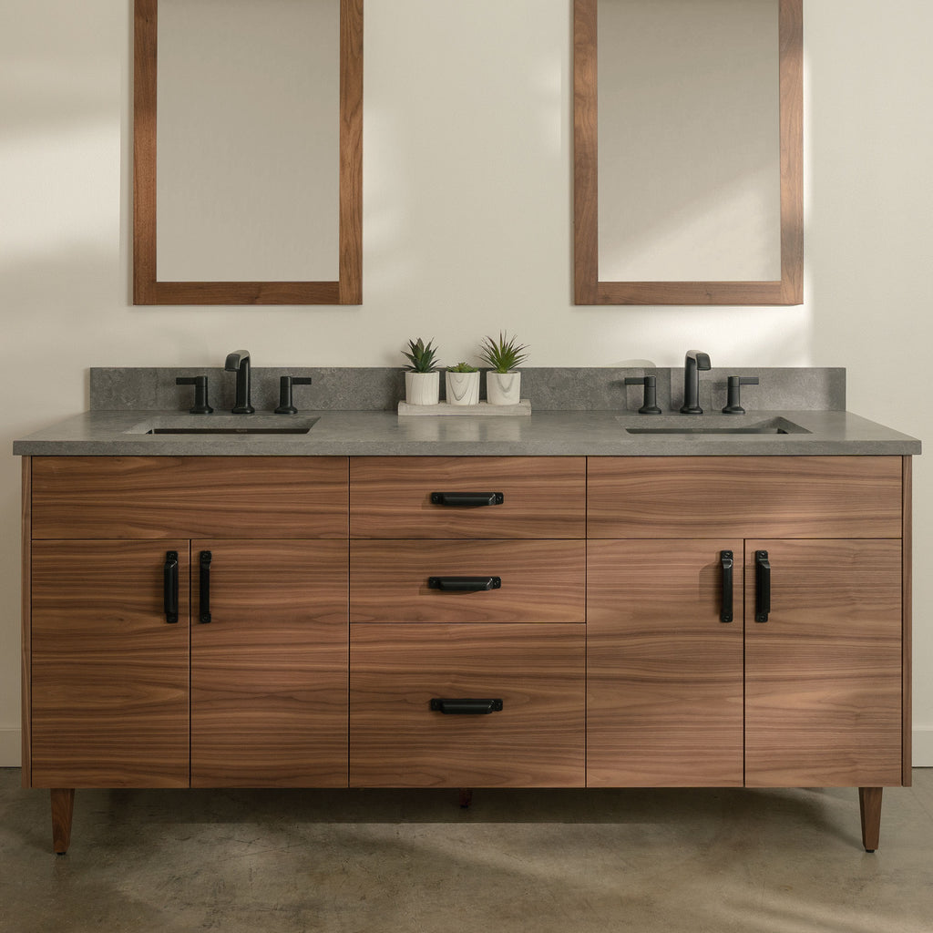 Austin Stainless 72" American Black Walnut Bathroom Vanity, Double Sink