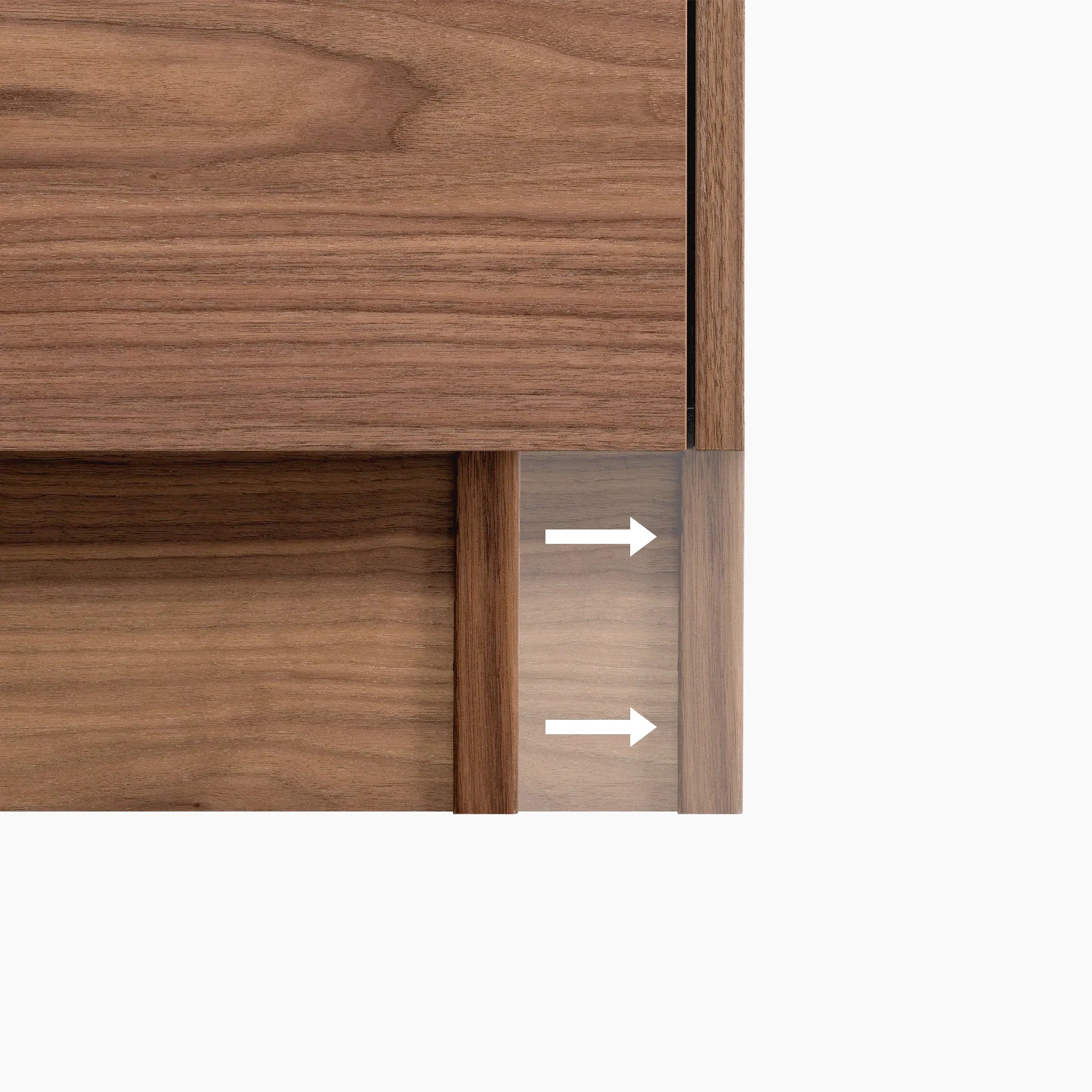 The door and drawer fronts are grain matched from one piece of walnut veneer, for a sleek modern look. The grain pattern will flow beautifully from one door to the next.