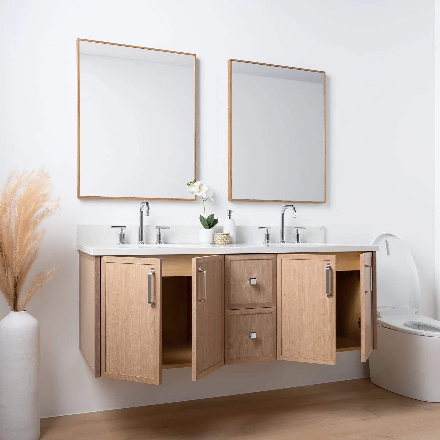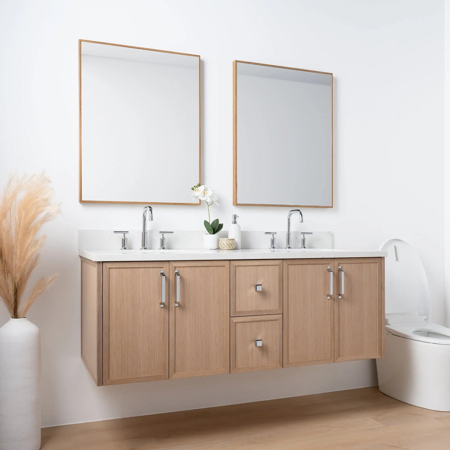 Cape Breton 60" Wall Mount White Oak Bathroom Vanity, Double Sink