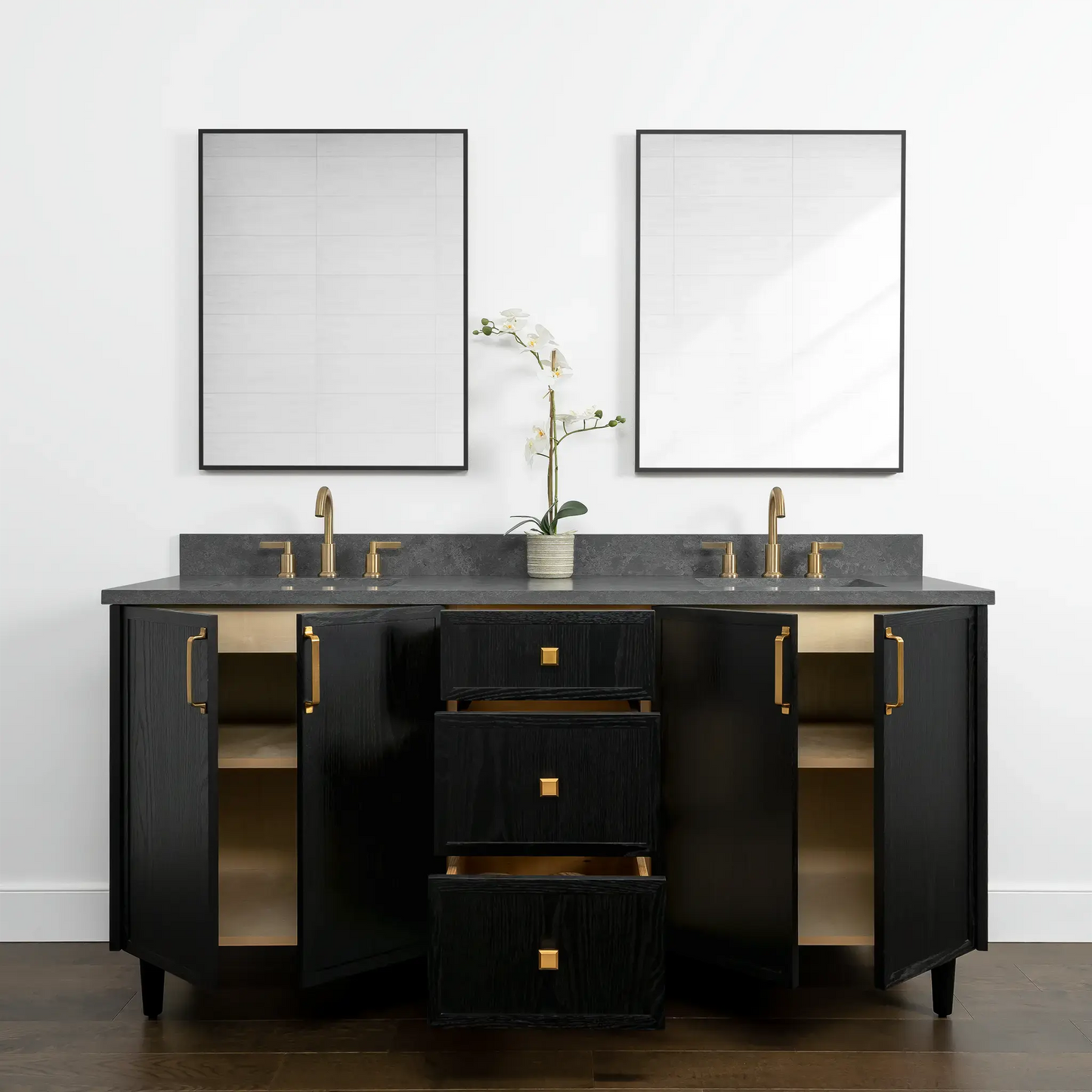 Cape Breton SLIM 72" Blackened Oak Bathroom Vanity, Double Sink