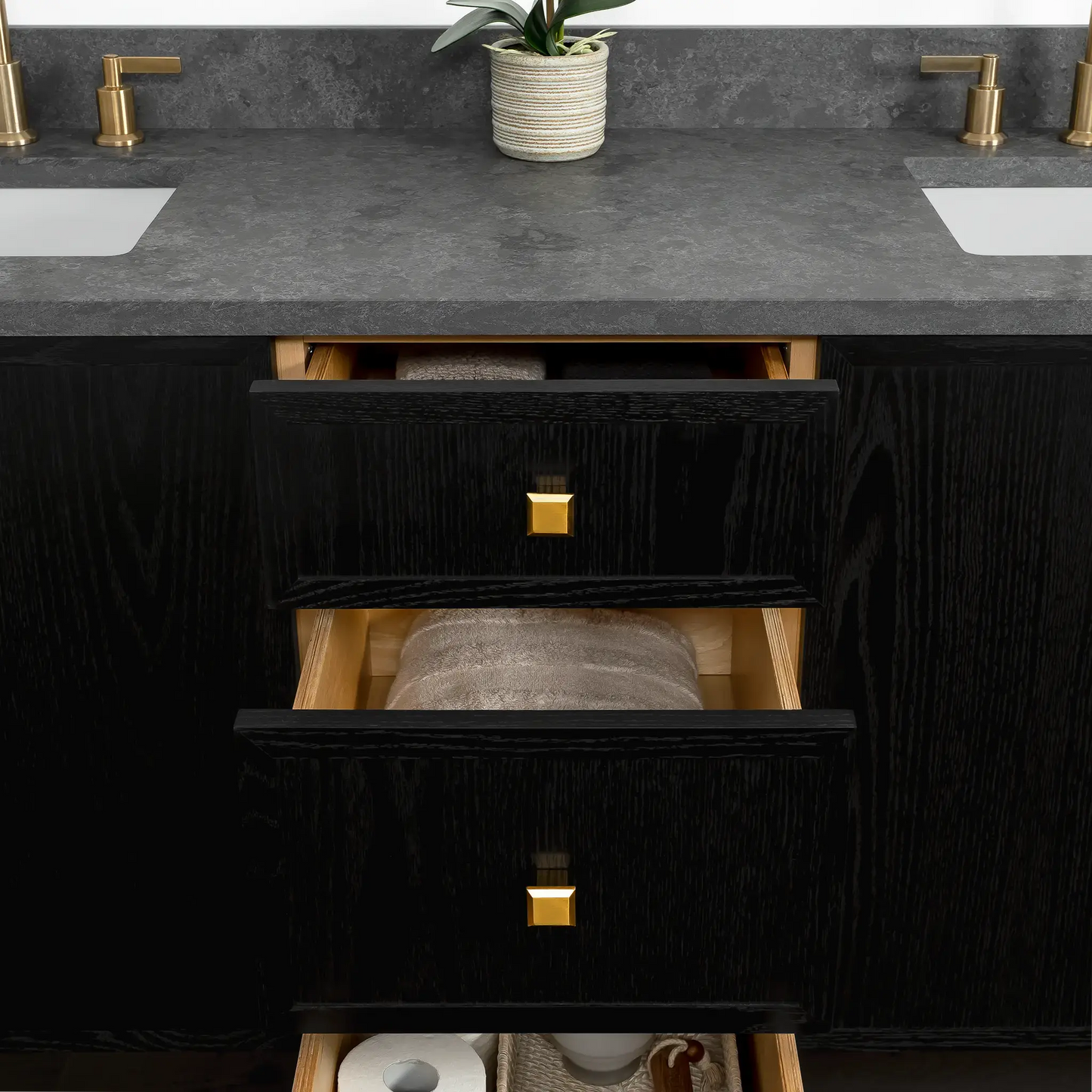 A closer look at the sophisticated design elements of the Cape Breton Blackened Oak Vanity.